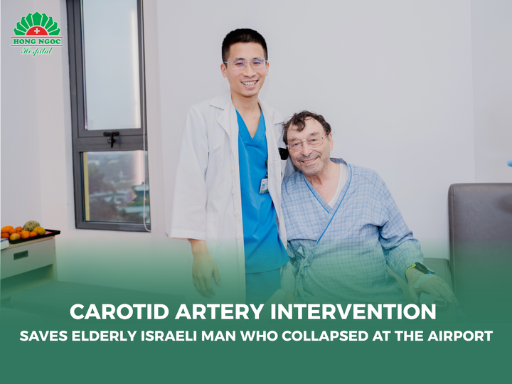 Severe carotid artery stenosis detected after fainting at the airport; at high risk of stroke, the 79-year-old Israeli man was fortunate to have cerebral blood flow restored in time at Hong Ngoc General Hospital.