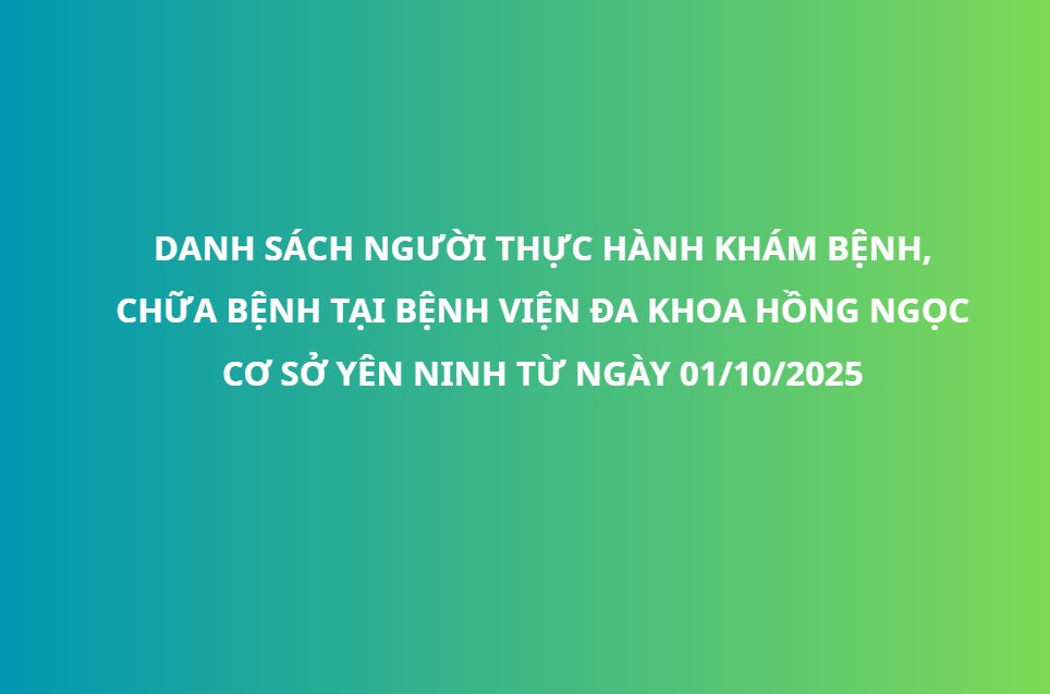 Danh sách người thực hành khám bệnh, chữa bệnh tại Bệnh viện Đa khoa Hồng Ngọc từ ngày 01/10/2025