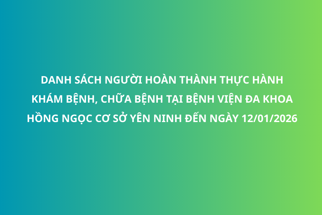 Danh sách người thực hành đã hoàn thành quá trình thực hành khám bệnh, chữa bệnh tại Bệnh viện Đa khoa Hồng Ngọc Phúc đến ngày 12/01/2026