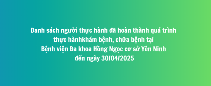 Danh sách người thực hành đã hoàn thành quá trình thực hành khám bệnh, chữa bệnh tại Bệnh viện Đa khoa Hồng Ngọc cơ sở Yên Ninh đến ngày 30/04/2025