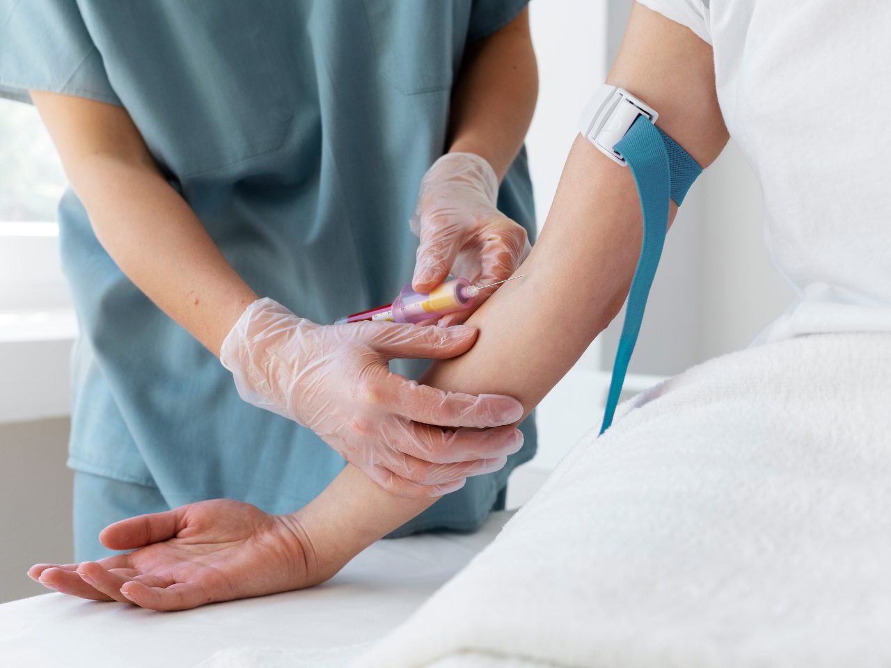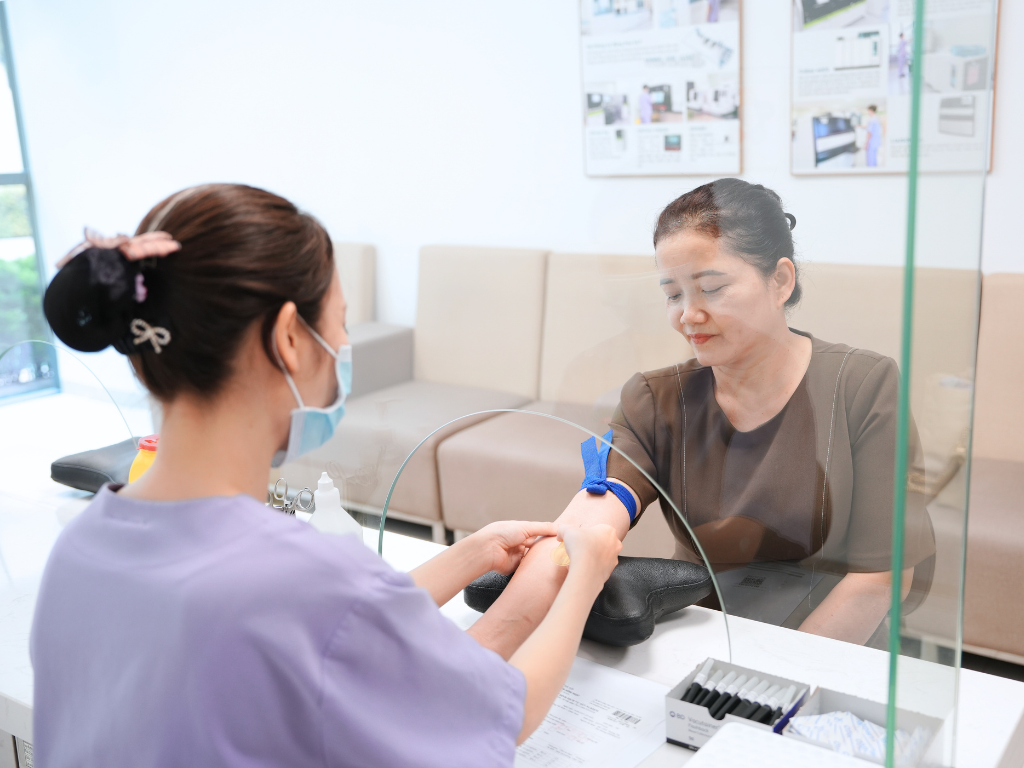 - Lấy máu: nhân viên y tế lấy máu tĩnh mạch để làm mẫu phẩm xét nghiệm.